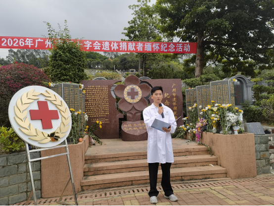 26日上午,在新塘华侨公墓举行的缅怀纪念活动仪式上,日韩色情 2024级郭泓志同学作为高校学生代表发言:记得第一节解剖实验课的时候,我与同学们一同参加感恩大体老师仪式。那时,我深刻感受到了大体老师们的伟大。他们用无声的语言,教会了我们如何去尊重生命、理解生命。大体老师的奉献,激励我们在追求医学真理的道路上砥砺前行,在践行医者仁心的征程中永葆初心。作为医学生的我们将敬畏生命、感恩奉献的精神融入血脉,努力成长为医术精湛、医德高尚的医者,以仁心仁术服务人民、报效国家。