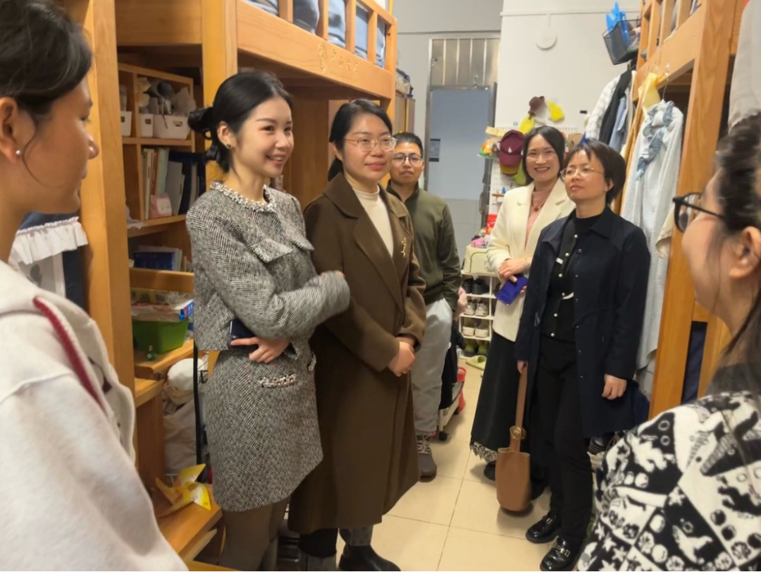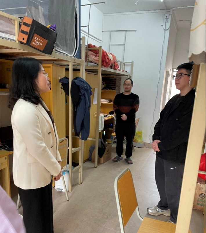 Photo: Vice Dean Wang Shuzhen, Zhang Yurong, the counselor for postgraduate students, Associate Professor Huang Erwen, and Zhu Yiqiong, the class teacher for the long-term academic program, visited the student dormitories on the North Campus.
