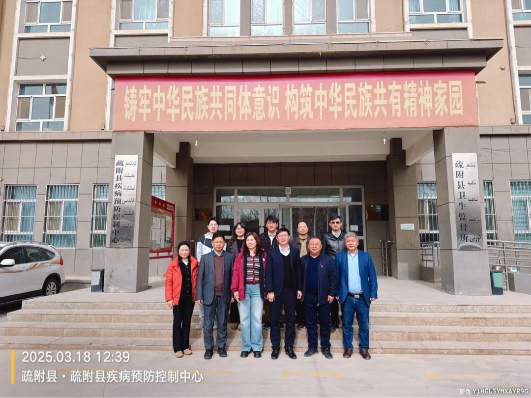 刘峰书记对吕志跃教授一行表示诚挚欢迎,希望双方以此次交流为契机,进一步健全公共卫生合作长效机制,共同筑牢喀什地区重大寄生虫病防控屏障,守护人民生命健康。穆尼热克孜·买买提依明副主任详细介绍了疏附县肝包虫病的防治情况,通过强化三级预防网络建设、深化基层健康宣教等综合措施,疏附县已初步构建起包虫病“筛-防-治-管”一体化防控体系。吕志跃教授充分肯定疏附县疾病预防控制中心在包虫病流行病学调查、人畜同步治疗与信息化管理等方面取得的示范性成果,期待双方信息共享,优势互补,携手促进包虫病等重大地方寄生虫病的防控实践。