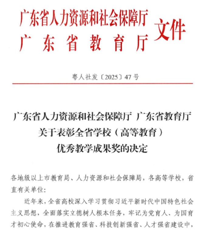 广东省教学成果奖是全省教育教学成果的权威荣誉奖项,旨在激励广大教育工作者坚守立德树人初心,践行“为党育人、为国育才”使命,积极探索新时代教育教学改革路径,持续提升教书育人能力与水平。