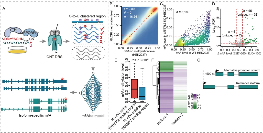 On February 7, 2025, Wang Jinkai's research group at the Sun Yat-sen School of Medicine at Sun Yat-sen University published an online study entitled "Single-molecule m6A detection empowered by endogenous labeling unveils" in the journal Molecular Cell complexities across RNA isoforms ". In this paper, APOBEC1-YTH was used to generate C-to-U mutations near m6A of endogenous RNA in cells, and the third generation of Oxford nanopore direct RNA sequencing (ONT DRS) was performed, so that m6A could be endogenous labeled at the single-molecule level by C-to-U mutations of 10-100 nt near the known m6A site. After data cleaning through semi-supervised learning, m6A electrical signals of about 1 million single molecule level 5-mer were obtained, and a deep learning model m6Aiso was trained to accurately detect m6A modifications at the single molecule level. This revealed that the same m6A site can also produce extensive differences in different isomers through at least three different mechanisms. Especially in the epithelial-stromal transformation model, after TGF-β induction, the activated transcription factor SMAD3 selectively promotes m6A modification of downstream RNA with SMAD3 as promoter by recruiting METTL3/METTL14/WTAP, resulting in selective m6A up-regulation of the same gene using isomers of different promoters. This study provides a new perspective for understanding the complexity of m6A in isomers and the selective regulation mechanism of m6A.