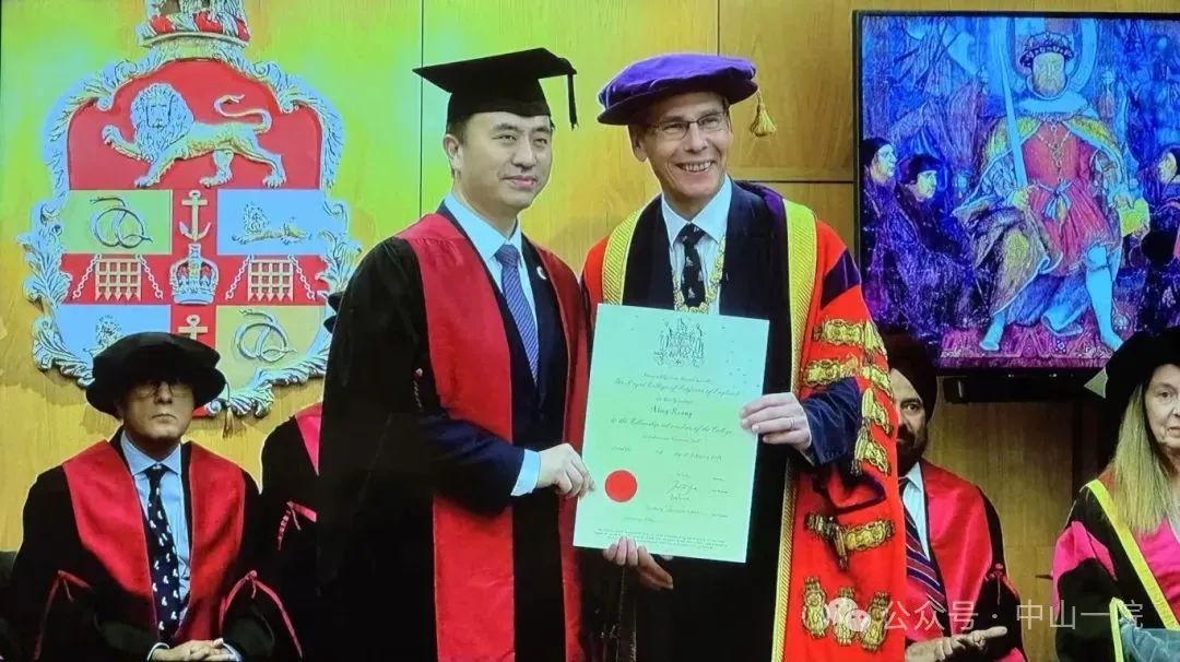 On July 9th, Professor Kuang Ming—Vice President of the First Affiliated Hospital of Sun Yat-sen University, Academic Leader of the Hepatobiliary and Pancreatic Surgery Center, and Dean of the College of Basic Surgery—officially received the "Fellow of the Royal College of Surgeons (FRCS)" certificate from Professor Tim Mitchell, President of the Royal College of Surgeons (RCS), at the RCS headquarters in England.