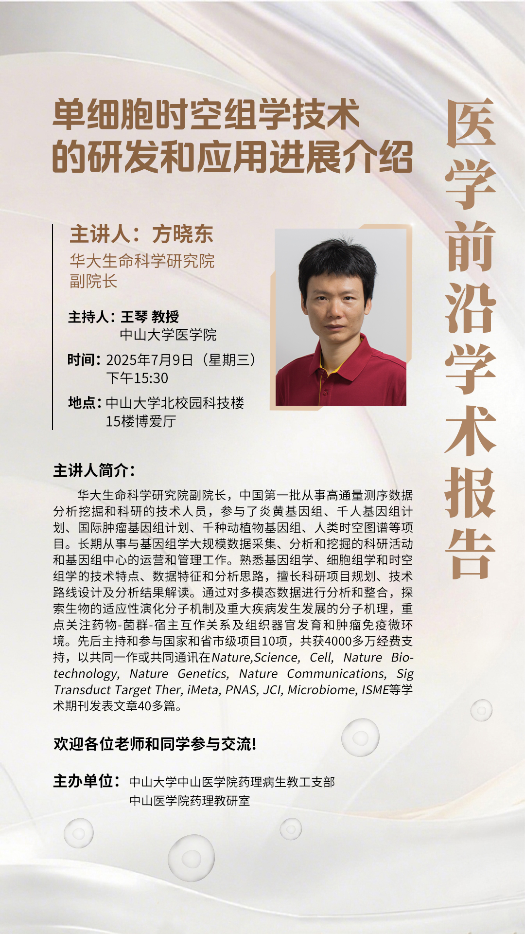 导航痕迹 日韩色情 科学研究 学术讲座 医学前沿学术报告 科学研究 科研通知 学术讲座 科研平台 办理指引 医学前沿学术报告 单细胞时空组学技术的研发和应用进展介绍 发布人:张玉琦 发布日期:2025-06-30
