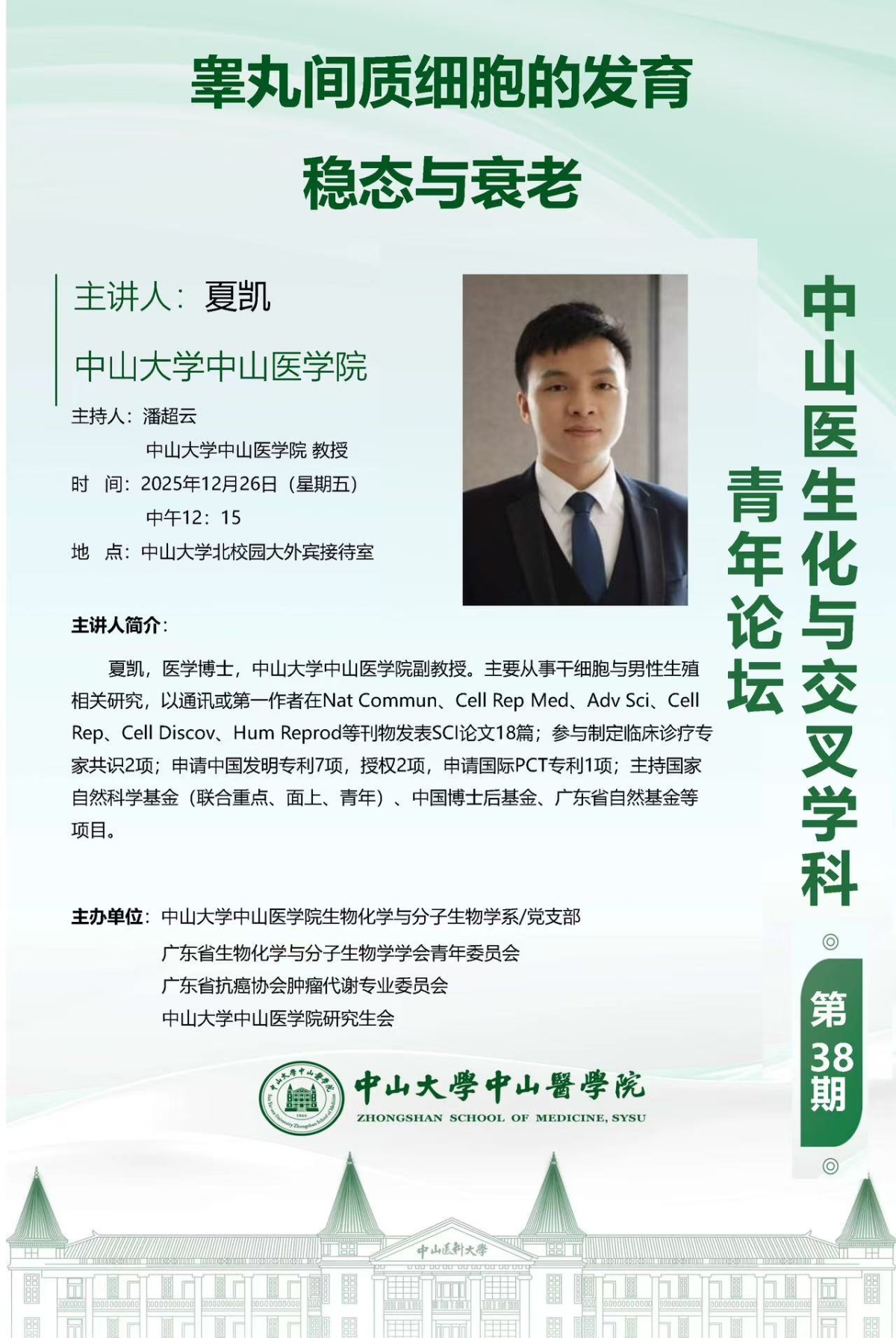 导航痕迹 日韩色情 科学研究 学术讲座 中山医生化与交叉学科青年论坛 科学研究 科研通知 学术讲座 科研平台 办理指引 中山医生化与交叉学科青年论坛 睾丸间质细胞的发育稳态与衰老 发布人:张玉琦 发布日期:2025-12-24