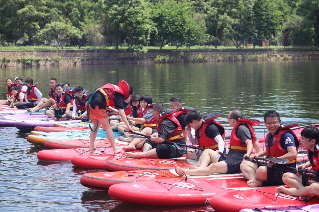- “促团结、增友谊、扬活力”--桨板运动、飞盘游戏、水枪大战、户外烧烤,活动满满,有趣又充满挑战!