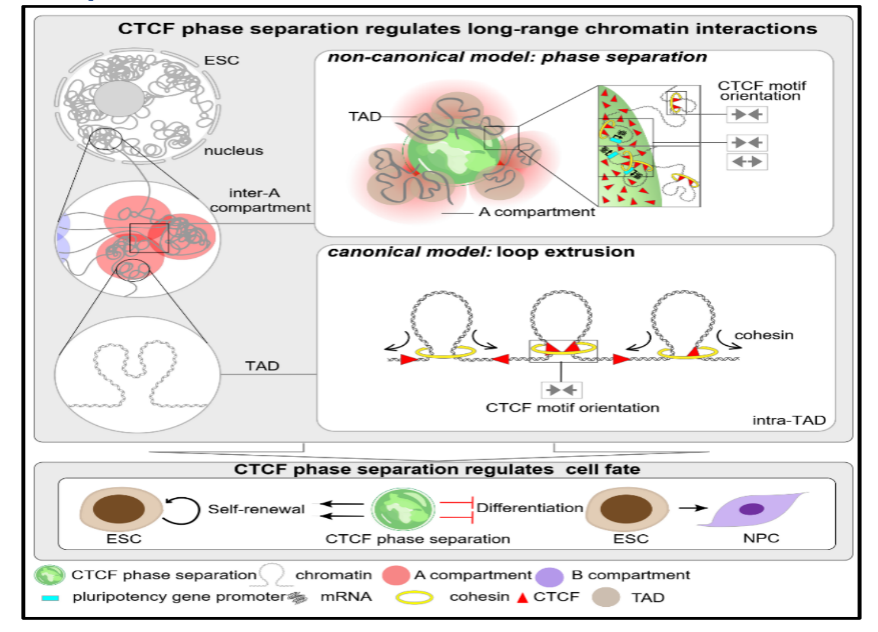 重点实验室丁俊军团队发现CTCF通过相分离调控染色质长距离互作的非经典模型
