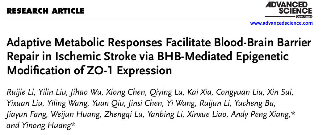 项鹏/黄一浓团队提出卒中后适应性生酮代谢保护血脑屏障的新机制