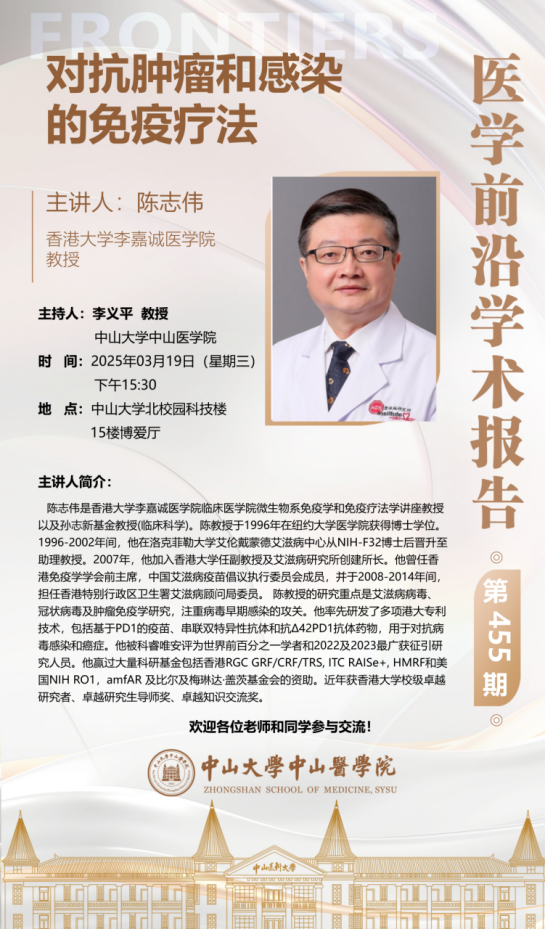 日韩色情 医学前沿学术讲座第455期:对抗肿瘤和感染的免疫疗法
